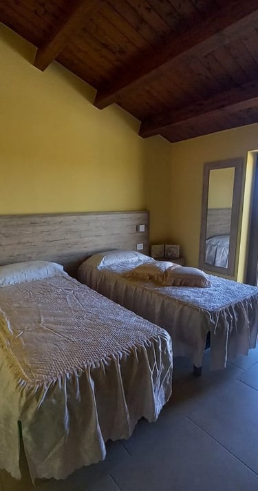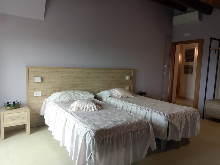 E’ una camera spaziosa con 2 letti singoli/uso matrimoniale a cui poter aggiungere un ulteriore posto letto